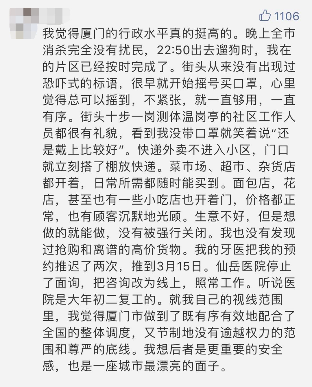 不可否认,这场疫情展示了厦门越来越强的城市竞争力。不少网友表示厦门是一座美丽、温馨和安全的城市。