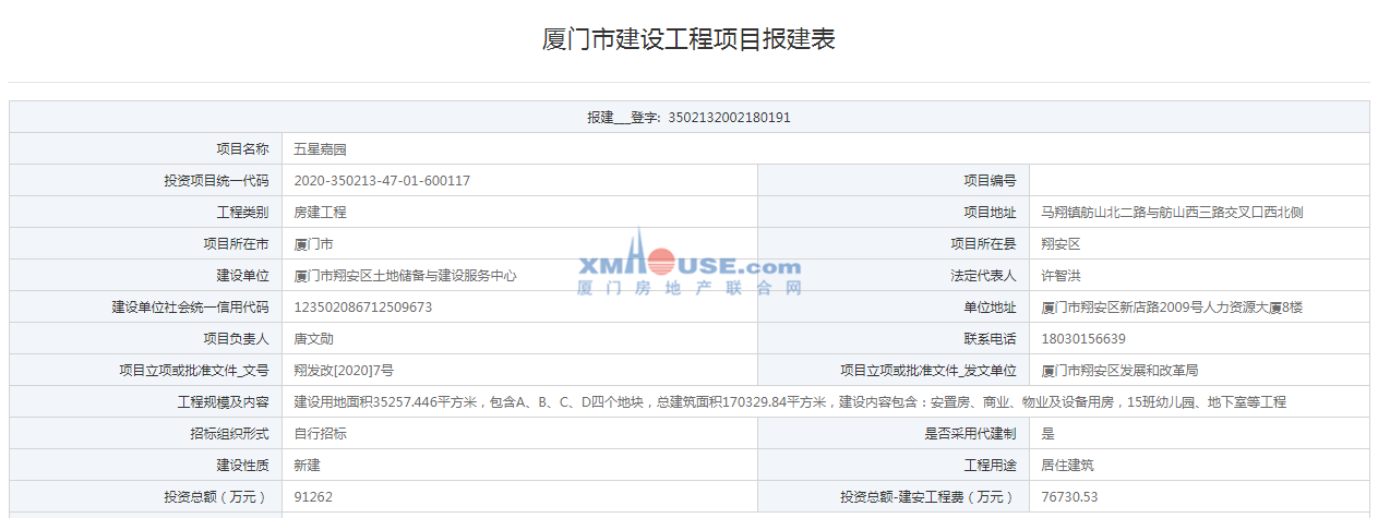 近日,五星嘉园报建信息公布,该项目位于马翔镇舫山北二路与舫山西三路交叉口西北侧,建设用地面积35257.446平方米,包含A、B、C、D四个地块,总建筑面积170329.84平方米,建设内容包含:安置房、商业、物业及设备用房,15班幼儿园、地下室等工程,总投约91262万元。