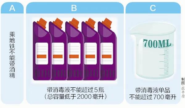 乘地铁禁带酒精 限量带消毒液