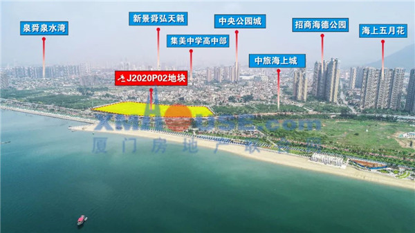 中海厦门东湾前身为J2020P02地块,于2020年9月被中海以总价18.2亿、楼面价26903元/㎡竞得,其和中旅海上城地段相同,配套共享,这边我们就不在一一赘述了。