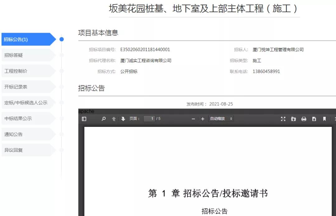 近日,坂美花园桩基、地下室及上部主体工程(施工)招标。