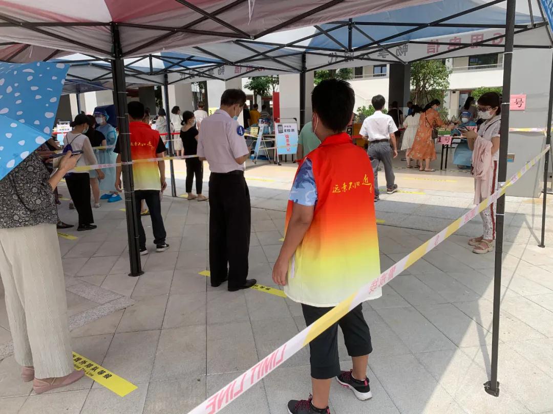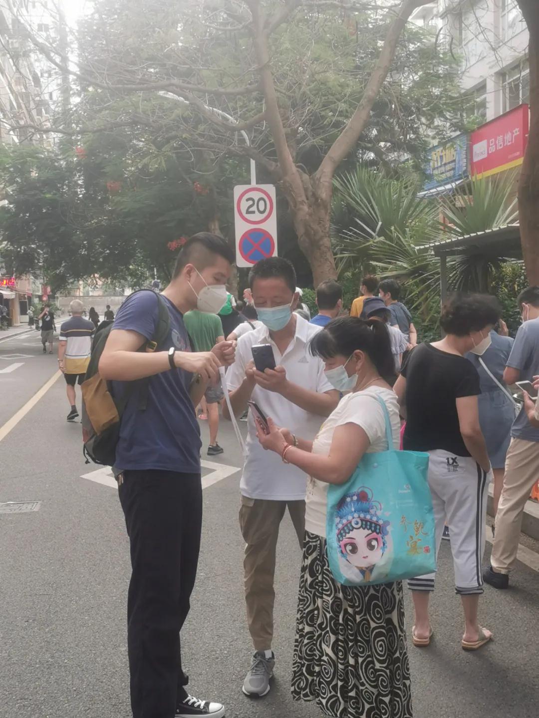 “年轻人都去上班了,我们闲着没事当然要来帮忙了。”57岁的李阿婆笑道。在后埔社区禾山中学检测点,除了社区工作人员之外,志愿者中有不少都是五十岁以上的老年人。“我们都是土生土长的本地人,我们也想为守护家园出一份力。”