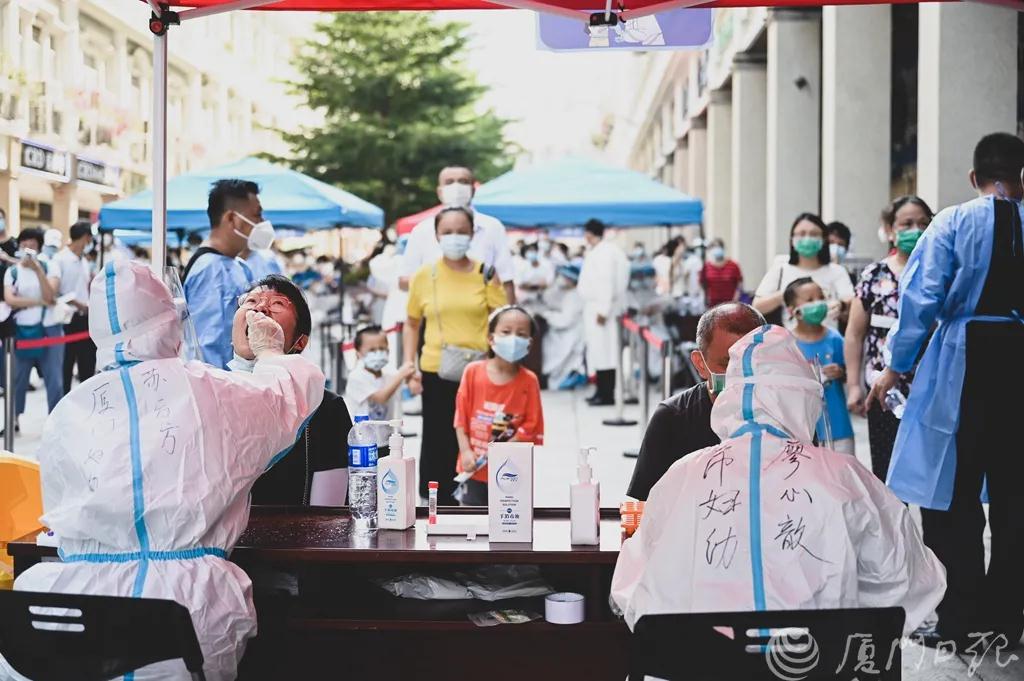 思明区特殊教育学校是开元街道西边社区核酸检测点,51岁的退伍老兵雷静从早上7点就过来帮忙维持秩序。和他一起的,还有其他四位老兵朋友。他说,作为退伍军人,就要发挥余热,自己生活在厦门已经30多年,“美丽的厦门是我的第二故乡,我们对这里很有感情。每次困难面前,厦门人都团结一致,我们也要为这美丽的城市尽一份力量,希望疫情能早点过去。“