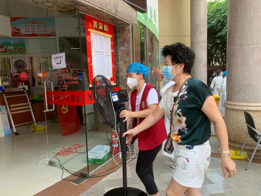 昨日中午,75份冰凉的烧仙草被送到思明莲薇社区居委会,让奋战一线的社区工作人员和志愿者们在中午休息时刻及时喝上了消暑饮品。购买烧仙草的,是64岁居民蔡明霞,昨日上午她已经扛了一台立式电风扇过来支援。