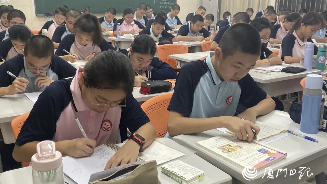 湖里实验中学初三年部分学生参加晚自习。