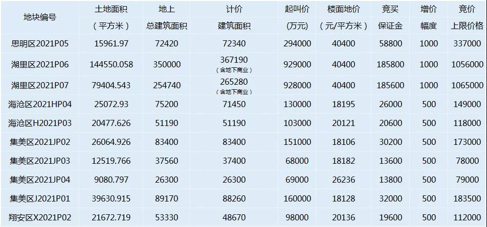 2021JP04地块位于集美新城,用地面积0.91公顷,计价建筑面积2.63万平方米,起拍价6.9亿元,起拍楼面价26236元/平方米。