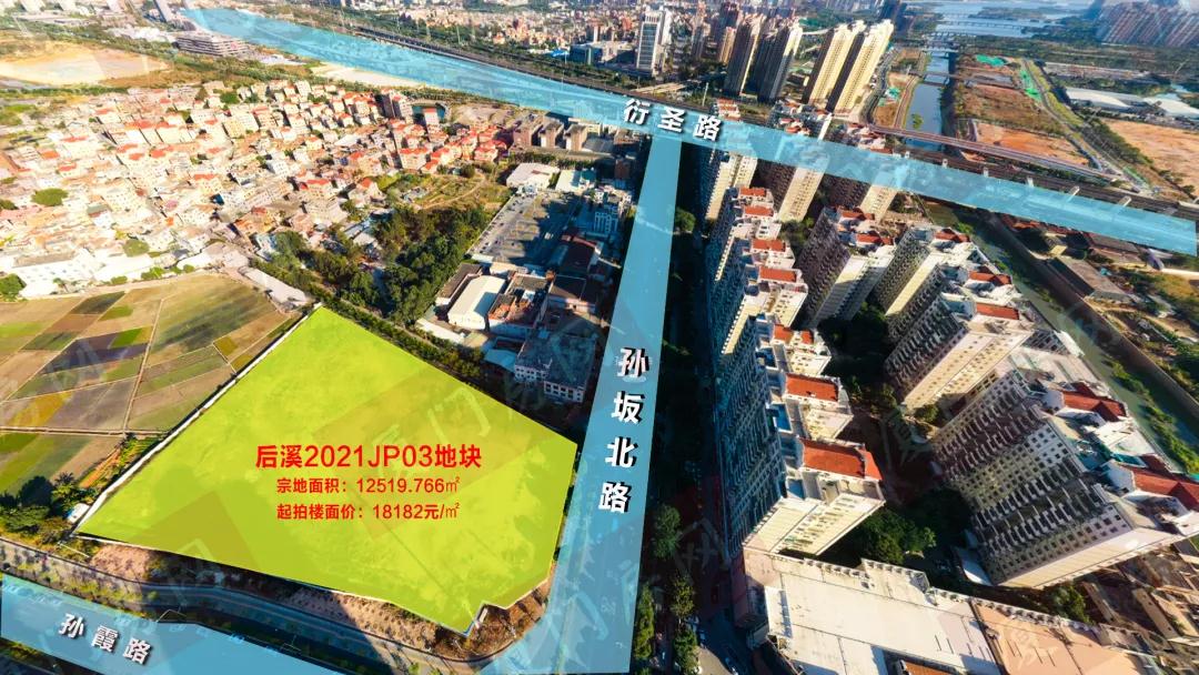2021JP03地块位于后溪片区,用地面积1.25公顷,计价建筑面积3.74万平方米,起拍价6.8亿元,起拍楼面价18128元/平方米。