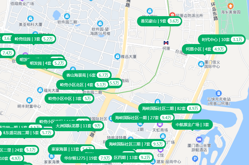 就目前而言,周边的小区楼盘主要有岭兜二里、香山海景苑、新景花园、大洲国际龙郡、海峡国际社区,房价在5万到9.4万之间。