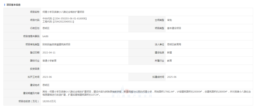 近日,何厝小学及英雄小八路纪念馆改扩建项目报建信息公布。