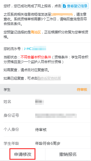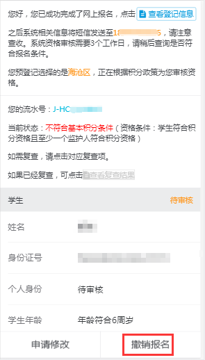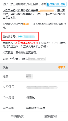报名成功后,系统会生成一个唯一的流水号,家长后期可以登录系统查看所填信息的审核状态情况。
