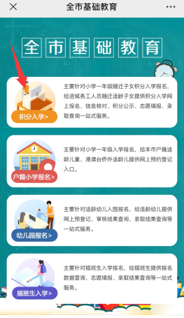 2.账号成功登录后,点击左下角的“i服务”,选择“基础教育报名”,点击“积分入学”即可进入积分入学报名界面。