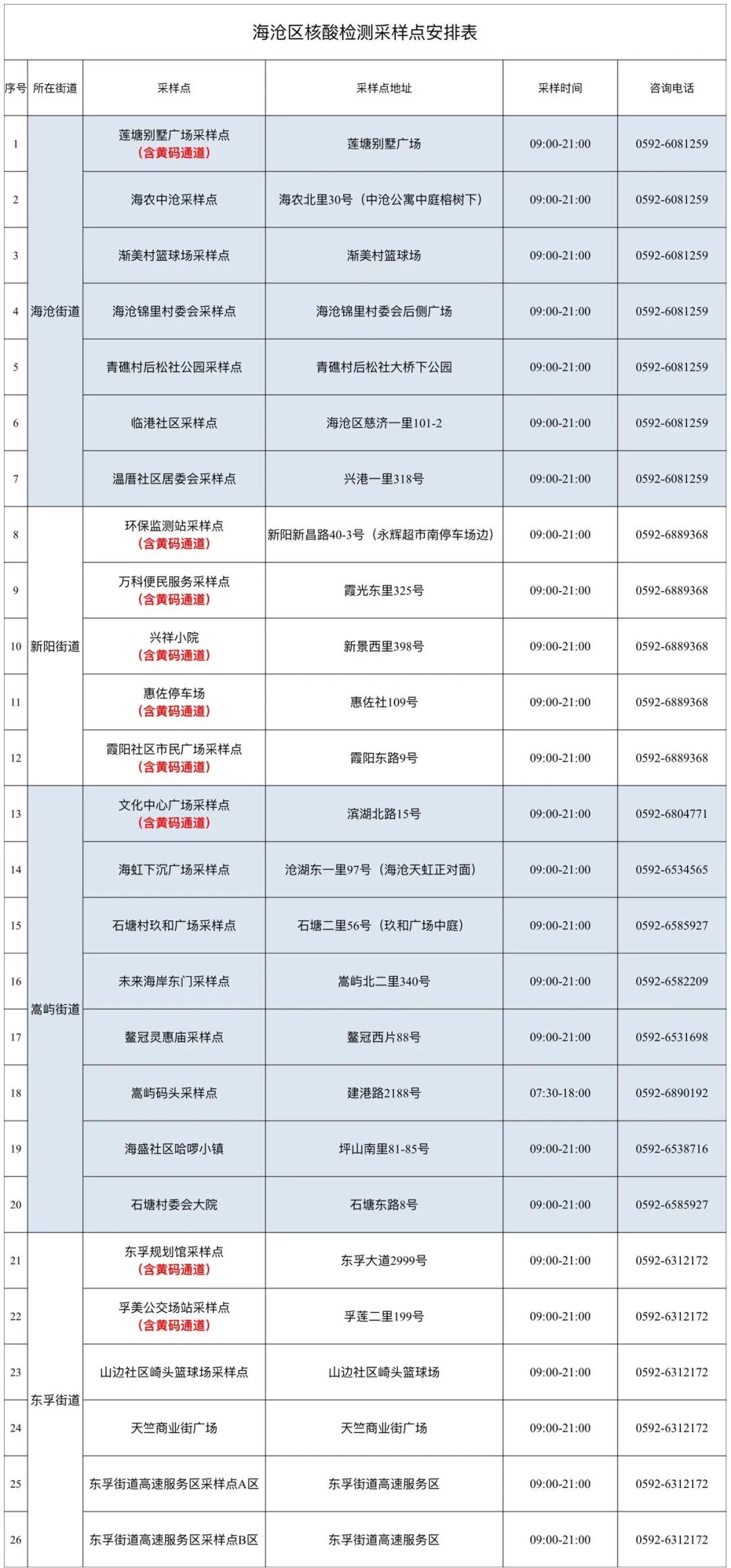 (原标题:速转!必检!5月4日海沧开通26个核酸采样点→)