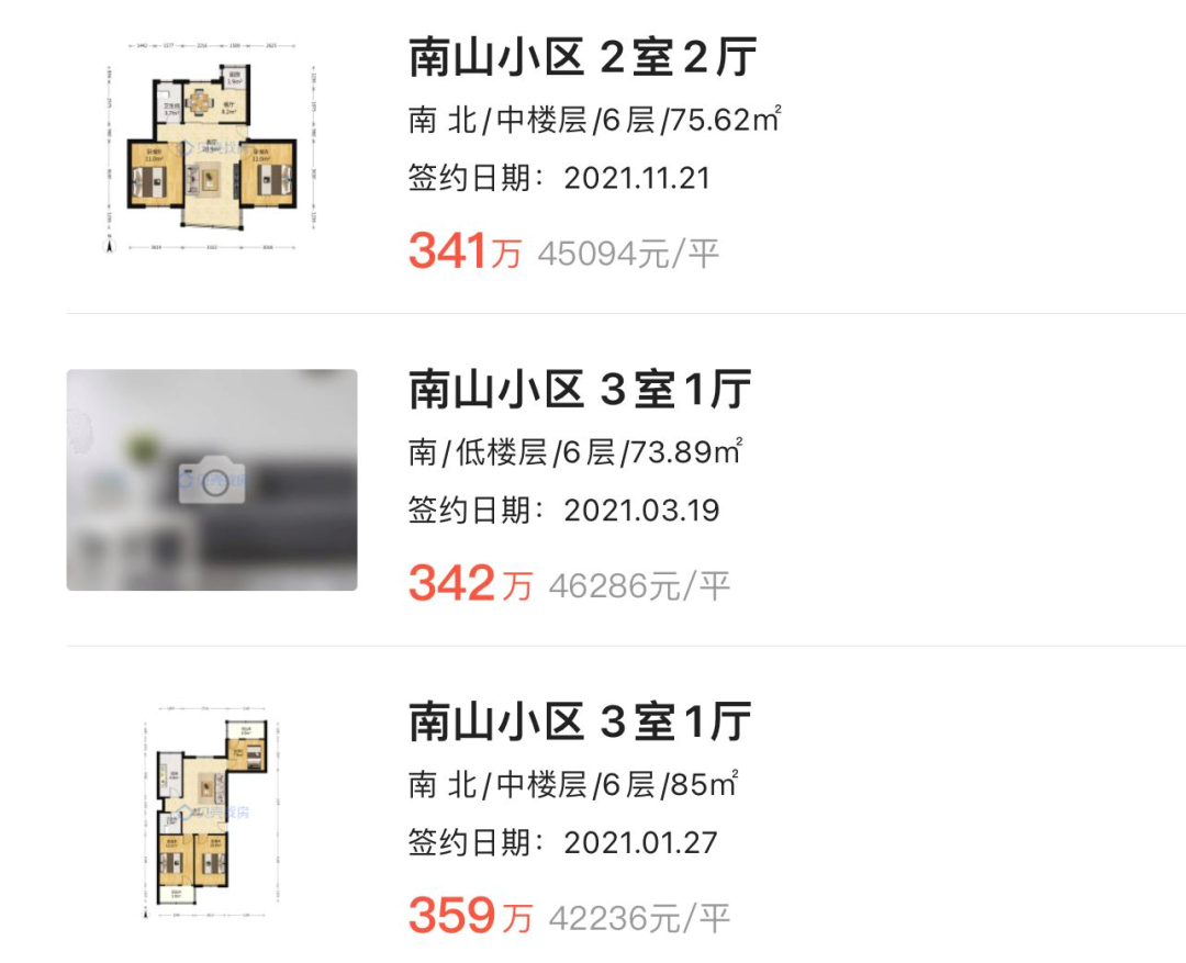 南山小区建成于上个世纪80年代末,小区由数十栋多层组成,户型有64-75㎡两房,86-100㎡三房。