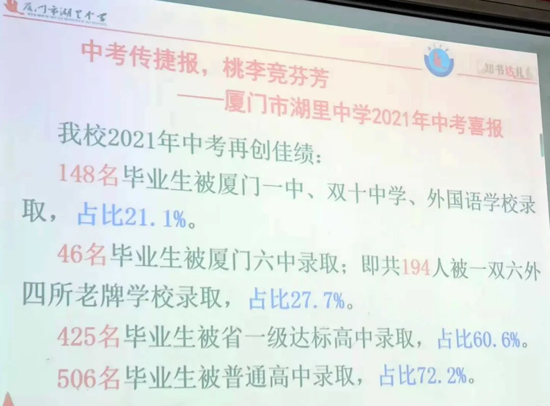 根据去年有家长曝光的照片来看,湖里中学2021年中考成绩:一双外录取率为21.1%,加上六中为27.7%,普高录取率为72.2%。