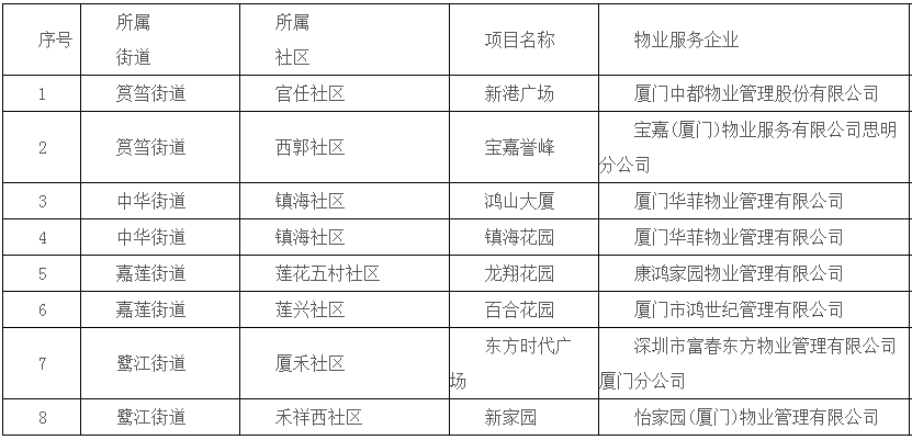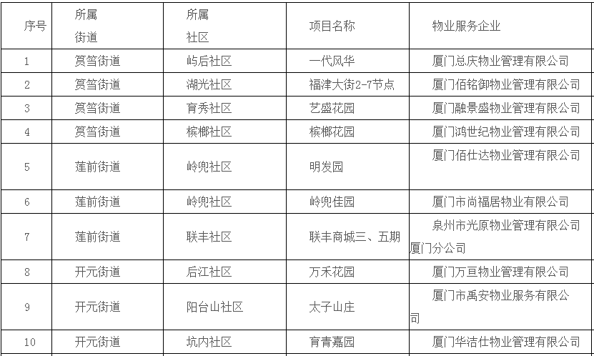 △思明区住宅物业服务项目“红榜”名单(第一期)