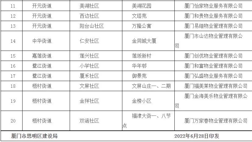 △思明区住宅物业服务项目“黑榜”名单(第一期)