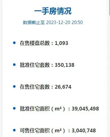 目前(截至12月20日),厦门一手可售住宅的面积约3040748㎡,可售住宅的套数达26674,按照11月份新房去化的量(2193套)来看,也只能卖一年左右。