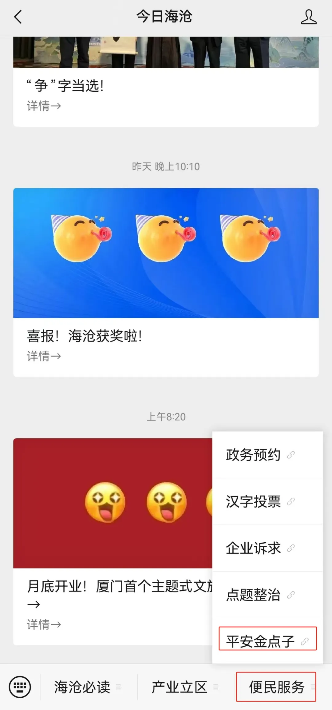 海沧有奖征集平安“金点子”,总计将评选20个优秀“金点子”,我们将给予每位提案人适当奖励。海沧平安“金点子”栏目针对平安海沧建设进行建议、意见收集,要求问题实事求是,不得虚假或夸大;建议内容分析要有理有据,“金点子”对策要切实可行。