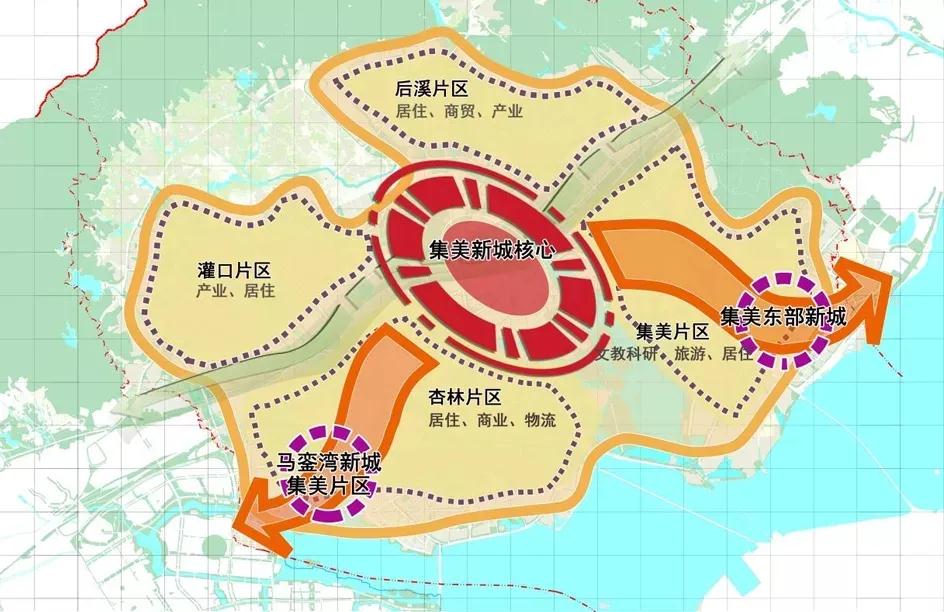 近期,集美十四五规划出炉,文件指出:集美区将统筹资源、突出功能、产城融合的思路,坚持一张蓝图干到底,打造以集美新城核心区为“一心”的 " 一心两翼四片 " 的城市总体空间格局,力争到2025年将集美新城建设为城市副中心